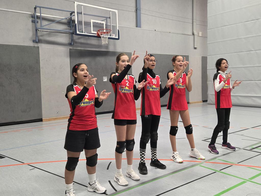 Tschakka bumm! Mit diesem Schlachtruf gingen die hochmotivierten Spielerinnen der Wettkampfklasse IV Mädchen in der Bruchwaldhalle Freisen ans Netz. In der Vorrunde der Saarlandmeisterschaft spielte das GSG gegen die Gemeinschaftsschule Freisen und – gegen sich selbst! Denn aufgrund der zahlreichen „GSG-Volleys“ konnten in diesem Jahr sogar zwei Teams für die Wettkämpfe der WK IV gemeldet werden. Dabei setzte sich ein Team „Rot“ des GSG souverän im Turnierverlauf gegen alle anderen Mannschaften durch und steht nun, wie schon die Wettkampfklasse II, ebenso im Landesfinale, das im Februar 2026 ausgetragen wird.