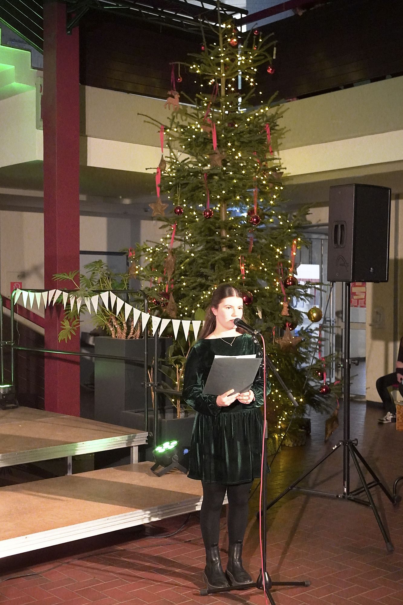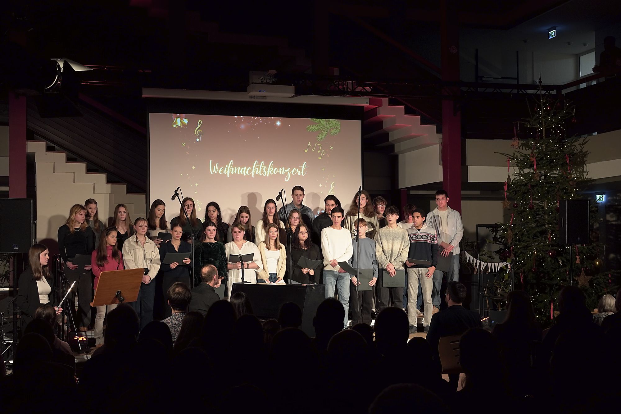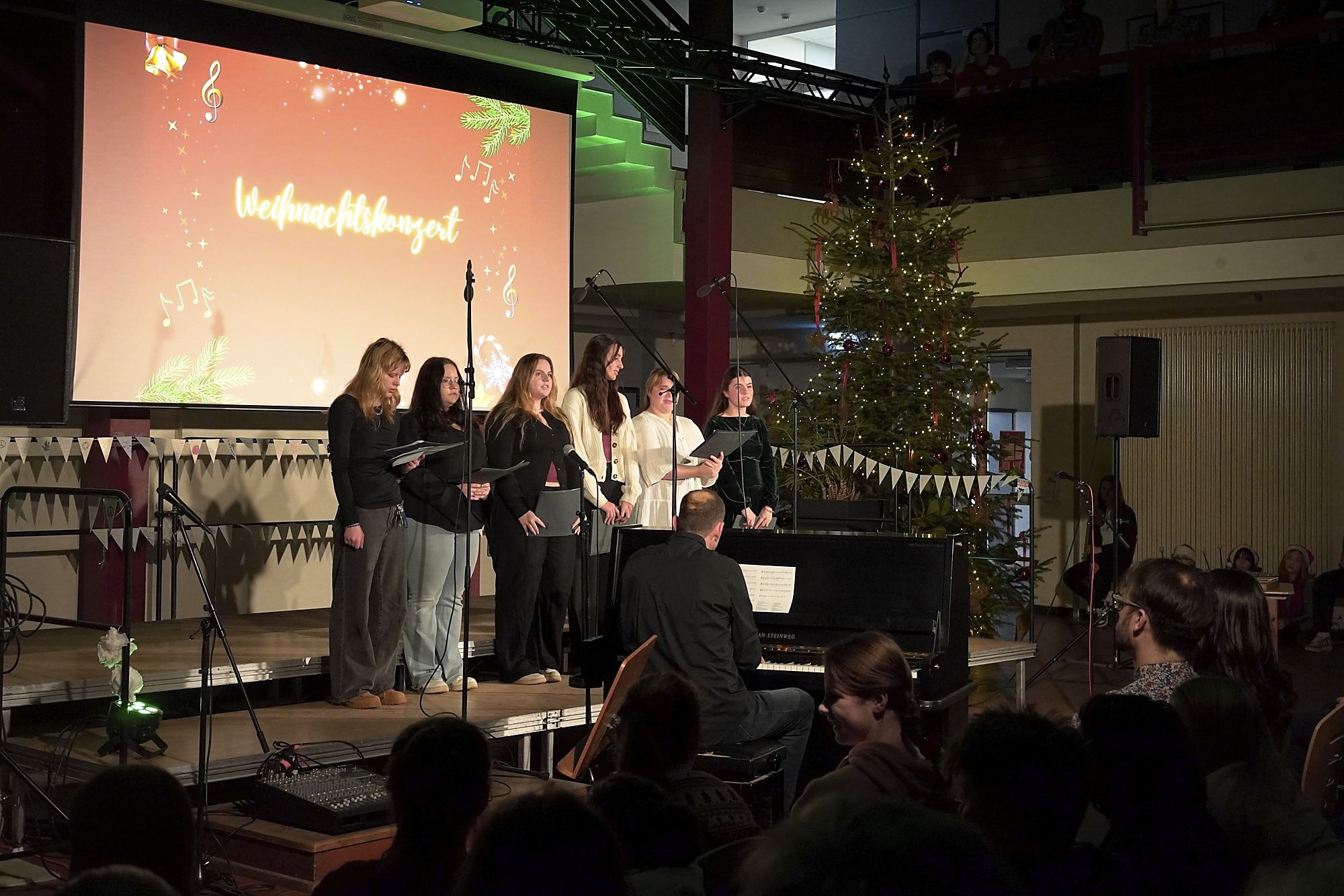 Nach sechs Jahren Pause war es endlich wieder so weit: Das beliebte Weihnachtskonzert kehrte zurück und lockte die gesamte Schulgemeinschaft sowie zahlreiche Ehemalige, Freunde und Bekannte in die Schule. Das Atrium war bis auf den letzten Platz gefüllt, der festlich geschmückte Weihnachtsbaum sorgte für eine stimmungsvolle Atmosphäre.