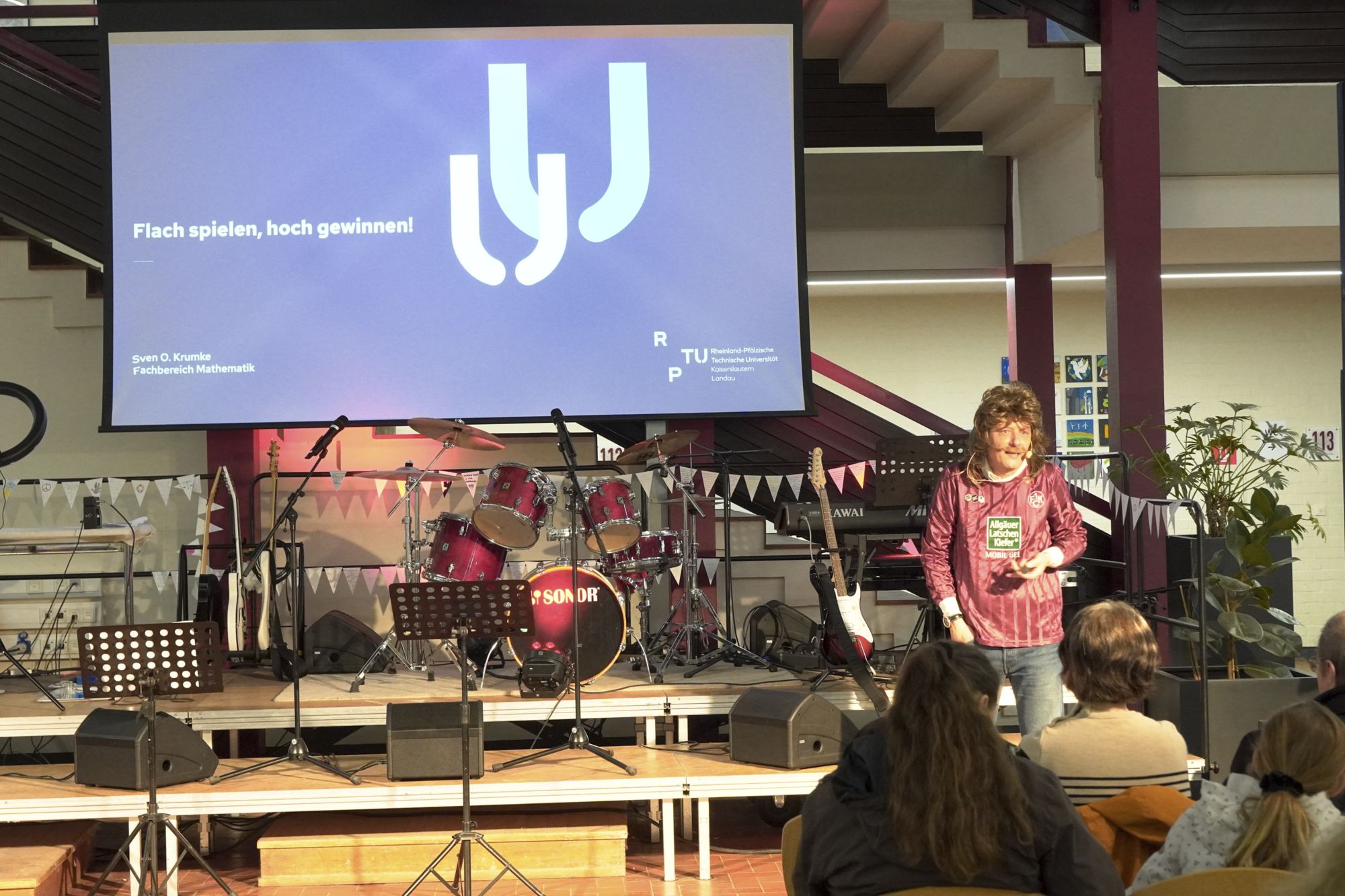 Professor Dr. Sven Krumke von der RPTU Kaiserslautern erklärte anschaulich, welche Rolle die Mathematik im Fußball spielt und warum ein gutes Verständnis von Mathematik bei der Erstellung des Traumkaders oder des Spielplans der Fußballbundesliga hilfreich sein kann. Ein weiterer Vortrag von Dr. Johannes Klingler vom MINT-Campus St, Ingbert zeigte live
