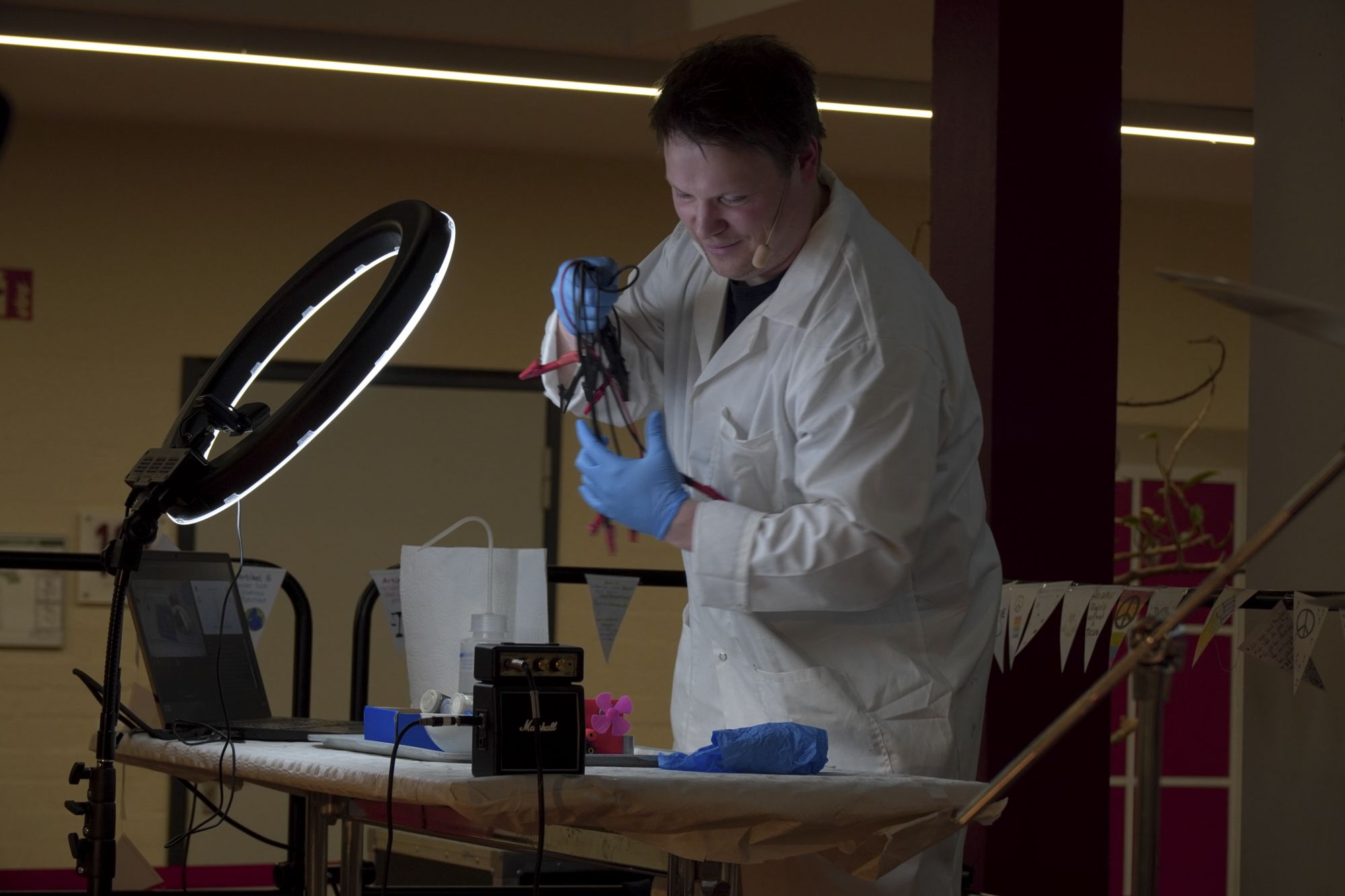 den Bau einer Batterie, überraschenderweise mit einer Heavy-Metal-Verknüpfung, die für Staunen und Begeisterung in der Zuhörerschaft sorgte. Und die schon legendäre Kochshow