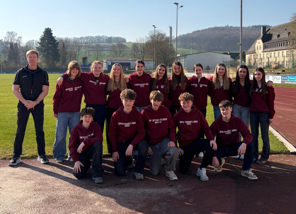 Ab sofort sind die Sportmentoren auf dem Schulhof des GSG Lebach während der sportbewegten Pause auf den ersten Blick zu erkennen: Sie tragen einheitliche Hoodies im typischen Bordeauxrot der Schulshirts, bedruckt mit dem Schriftzug ‚Sportmentoren‘ sowie ihrem jeweiligen Namen.