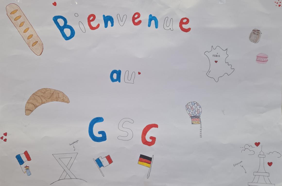 Ein köstlicher Duft von Crêpes im Atrium, ein Klassenraum, der an das beliebte Künstlerviertel Montmartre erinnert und wo man hinhörte, erklang die französische Sprache. Zwei Tage lang besuchten insgesamt 11 Klassen des GSG und des benachbarten JKG das diesjährige Sprachendorf im Atrium und auf dem Schulhof unserer Schule. Bereits zum zweiten Mal organisierten die Französisch-Kolleg*innen gemeinsam die zweitägige Veranstaltung, bei der lebensnahe Situationen und authentische Gesprächsanlässe geschaffen wurden, um das Sprechen zu üben. Bei den Stationen boulangerie, bar, crêperie und musée wurde sowohl kulinarisch als auch künstlerisch Gutes geboten und bei parc und photomaton hielten die Schüler*innen auf Postkarten und beim Fotoautomat die interessanten Eindrücke fest. So endete eine gelungene Veranstaltung, die mit Spaß und Freude die französische Sprache in den Fokus rückte.