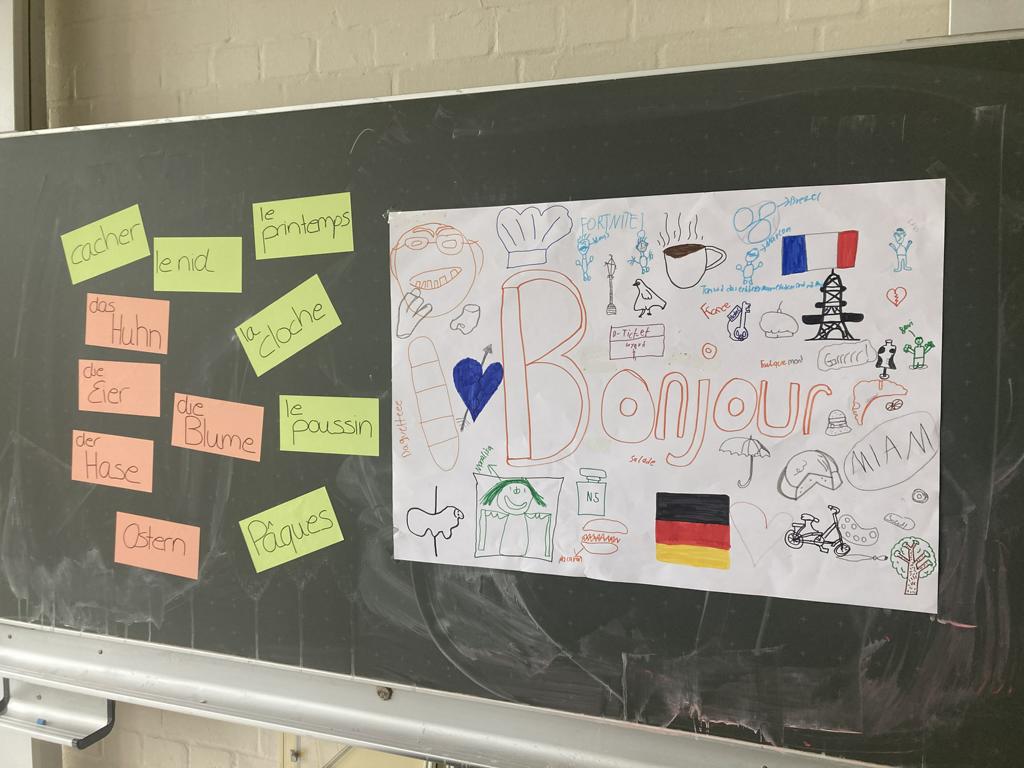 Ein weiteres Atelier bot die Möglichkeit, mithilfe eines Kahoot-Quiz spielerisch den Wortschatz zu erweitern und zu festigen – sowohl auf deutscher als auch auf französischer Seite. Für zusätzliche Bewegung und viel Spaß sorgte eine Fotorallye auf dem Schulhof, die in kleinen Gruppen durchgeführt wurde.