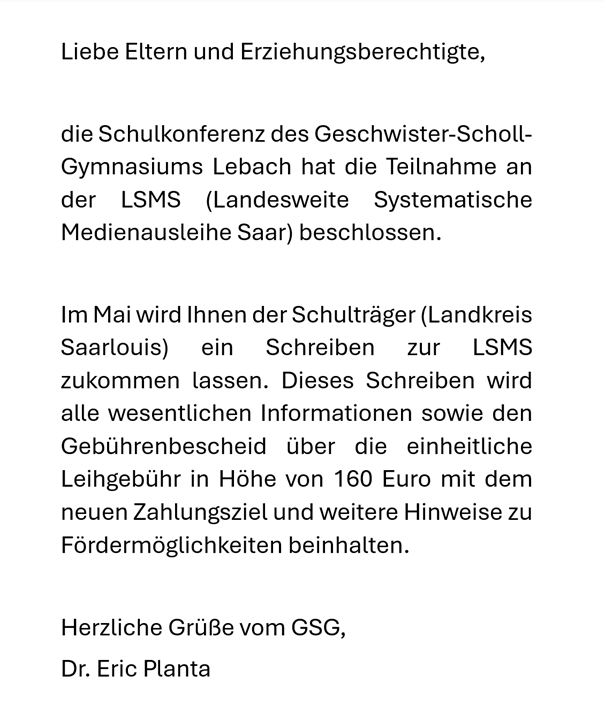 Sekretariat: ✆ 06881 999890 (7:30–15:00 Uhr) gsg-lebach@schule.saarland